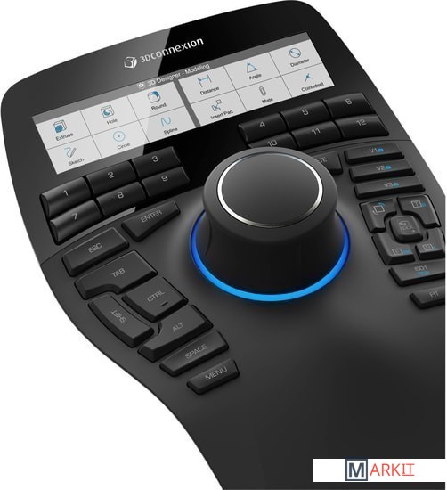 Рассматривать 3D-модели стало еще проще благодаря датчику 3D-мыши SpaceMouse Enterprise с технологией 6DoF (6 степеней свободы) и мгновенному доступу к стандартным и настраиваемым обзорам.Плавно двигая джойстиком, вы сможете легко и естественно управлять 3D-объектами, а для фиксации модели в выбранном стандартном виде достаточно всего одного нажатия. Три настраиваемые кнопки обзора (исключительно у 3D-мыши SpaceMouse Enterprise) обеспечат непревзойденное удобство 3D-навигации.Реализовать задуманное значительно проще, когда можно мгновенно вызвать одну из 12 часто используемых команд. Функции интеллектуальных клавиш 3D-мыши SpaceMouse Enterprise автоматически меняются при смене приложения или среды.А для большего удобства на новом дисплее с высоким разрешением отображаются значки назначенных клавишам команд из различных приложений — панель инструментов будет прямо перед вами. Благодаря простому, но функциональному интерфейсу 3DxWare 10, присвоить команды клавишам не составит труда.