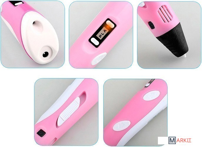 Компактное современное устройство, позволяющее создавать трёхмерные объекты с помощью специального пластика. Ручка оснащена LCD дисплеем, на котором выставляется температура плавления и регулируется скорость подачи пластика. Имеется встроенная система охлаждения. Нагревательное кольцо и сопло интегрированы в корпус ручки, что делает её использование абсолютно безопасным.
