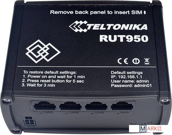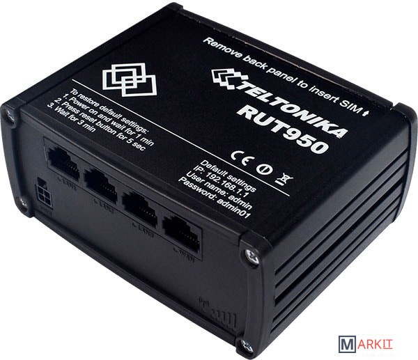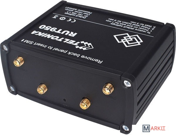 RUT950 — высоконадёжный и безопасный LTE-маршрутизатор для профессиональных приложений. Маршрутизатор обеспечивает высокую производительность, критически важную сотовую связь. RUT950 оснащён возможностью восстановления соединения при отказе одной SIM-карты. Внешние антенны позволяют легко найти наилучшее местоположение для достижения максимально сильного сигнала.