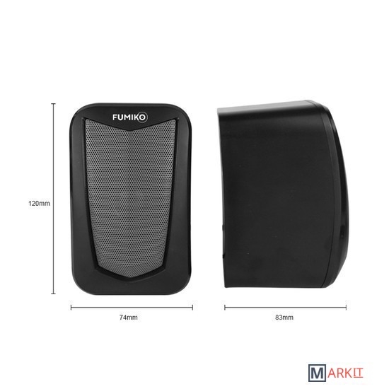 Колонки 2.0 - отличное решение для каждого, кому важен качественный и чистый звук. Модель FUMIKO ELVIRA отлично подходит как для прослушивания музыки, так и для просмотра фильмов. Компактное устройство особенно пригодится владельцам ноутбуков, встроенные динамики которых не способны выдать достаточную мощность и громкость. Новейшие технологии в производстве комплектующих позволили достичь хорошего уровня громкости и чистоты звучания. С источником звука они соединяются с помощью кабеля с разъемом 3.5 мм Jack. Питание происходит от USB - больше никаких лишних проводов. Любимая музыка в громком звучании теперь всегда будет с вами. Длина кабеля позволяет подключить колонки к разъемам на задней панели персонального компьютера.Размер одной колонки 12х8х7 см (высота/глубина/ширина)Общая длина провода 105 смРегулировка громкости на проводе