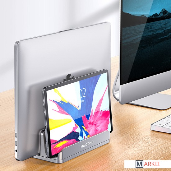 MAICONG LS818 Dual - это подставка под телефон, планшет и ноутбук, произведенная из высококачественного алюминия, подходит под все модели устройств, защищает с помощью силиконового покрытия, регулируется по ширине.