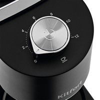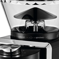 Жерновая кофемолка КТ-787 предназначена для помола кофейных зёрен. Она имеет конические жернова из углеродистой стали. Кофемолка даёт равномерный помол и позволяет настроить его степень: от мелкого - для эспрессо кофеварки, до крупного - для френч-пресса.Шкала на таймере представлена в условных единицах и примерно равна количеству чашек эспрессо. Работа таймера кофемолки зависит от количества этих выставленных чашек. Чем больше чашек выставлено на таймере, тем дольше кофемолка будет перемалывать кофе.Регулятором помола можно настроить степень помола: от тонкого - для кофеварки эспрессо, до крупного - для френч-пресса. Устанавливайте нужный помол, поворачивая контейнер для зёрен. Стрелка контейнера для зёрен будет указывать на выбранную степень помола.Конические жернова - это два конуса, один в другом. Внешний конус неподвижный, а внутренний вращается. Зерно, между жерновами, перемалывается, продвигаясь вниз. Такие жернова позволяют перемалывать зёрна за короткий промежуток времени, не перегревая их.В контейнер для молотого кофе помещается около 130 г кофе. Он оснащён крышкой с заглушкой, поэтому может использоваться для хранения кофе.Контейнеры для молотого кофе и зёрен съёмные. Внешний жернов также съёмный - для удобства очистки. Под крышкой контейнера для зёрен можно закрепить щётку для очистки и мерную ложку, которые идут в комплекте.Длина сетевого шнура: 0.9 мРазмер устройства: 205х125х300 мм.Вес: 2.1 кг.