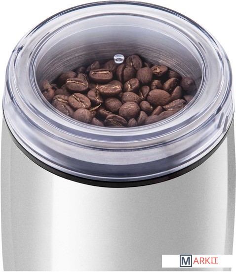 Предназначена для размалывания кофе в зёрнах, орехов, трав, мака и некоторых видов специй.Чаша на 60 граммов кофейных зерен, которой хватает на 12 чашек кофе.Большая кнопка питания, обеспечивающая простоту эксплуатации.Противоскользящие ножки.