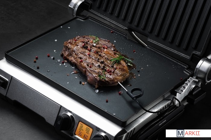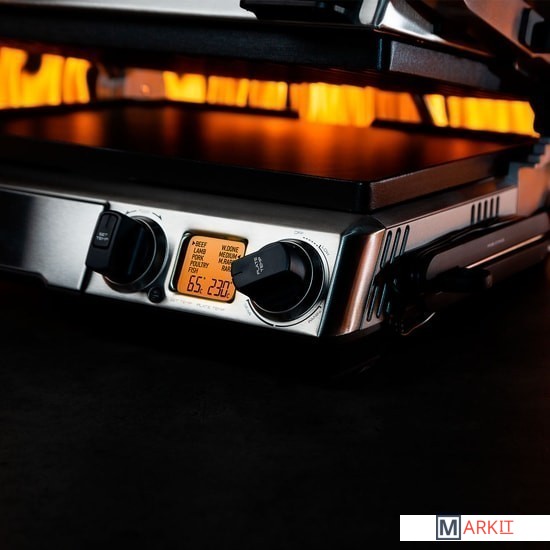 Идеальный гриль для идеального стейкаЛегендарная модель разработана в Австралии, где особенно ценятся правильные стейки. Уникальный гриль не просто готовит, а обеспечивает превосходный результат для каждого вида мяса: говядина, ягнятина, свинина, птица, рыба. Теплоемкие панели со встроенным нагревательным элементом запечатывают стейки, делая их самыми сочными.Регулирование прожаркиВыберите один из 4 типов прожарки (Rare, Medium Rare, Medium, Well Done) под ваши предпочтения. Встроенный термощуп помогает полностью контролировать температуру внутри мяса для точного результата. После достижения нужного показателя система подаст звуковой сигнал.Продуманная конструкцияТушите продукты в собственном соку или готовьте блюда без жира, изменив угол наклона поверхностей. Встроенный лоток и бортики на панелях защищают стальной корпус от загрязнений. Верхняя рабочая поверхность плотно закреплена на ручке и не болтается при открывании. За счет этого излишки сока и жира не стекают на стол. Панели снимаются одним движением и легко очищаются мягкими средствами.Универсальный и прочныйГотовьте не только идеальный стейк, но и овощи, яйца, блины, даже десерты. Рифленую и плоскую панели можно использовать в качестве пресса для сэндвичей. Трехслойное антипригарное покрытие Quantanium делает G802 устойчивым к повреждениям.Непревзойдённая мощностьПродуманная конструкция обеспечит прожарку по всей рабочей поверхности. Быстрый и равномерный нагрев достигается благодаря запатентованному элементу мощностью 2400 Вт. Система предупредит о перегреве уведомлением на дисплее. Она также защищает от резкого падения температуры, поэтому продукты сохранят безупречный вкус.