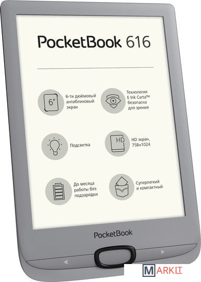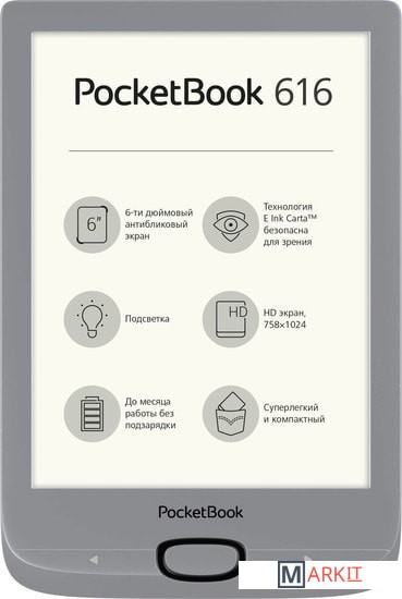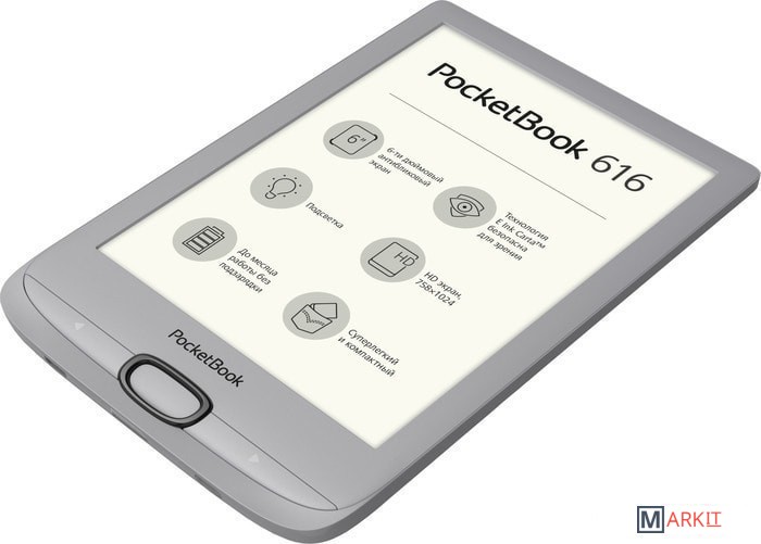 С новым PocketBook 616 комфорт чтения в движении выходит на новый уровень. Реализованный в новом минималистском и изысканном дизайне компактный ридер размером всего 161,3 x 108 x 8 мм легко поместится в кармане джинсов и даже самой маленькой женской сумочке. Ридер доступен в привлекательном обсидиановом черном цвете.