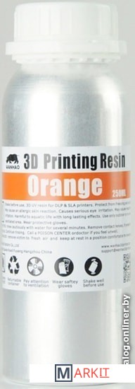 Markit » Расходные материалы для 3д принтера » Фотополимер Wanhao Water Washable 250 мл (оранжевый)