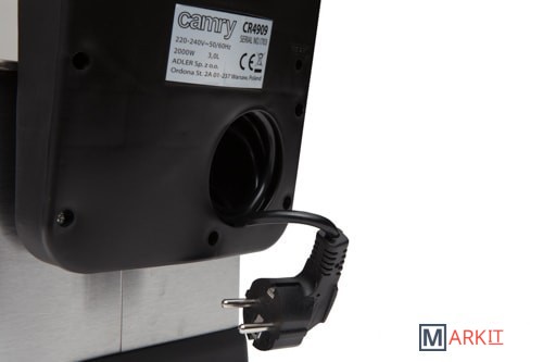 Фритюрница Camry CR4909 оснащена фильтром в крышке и освещенной кнопкой открывания. Ваши блюда не пригорят благодаря регулируемому термостату.
