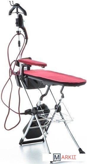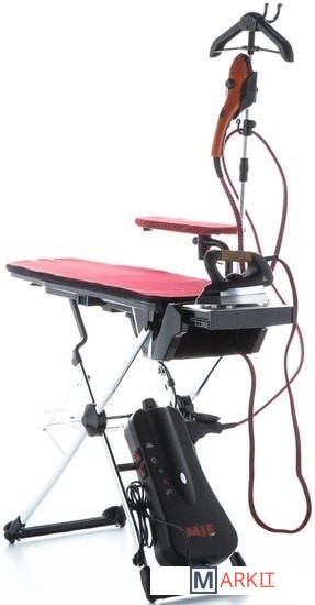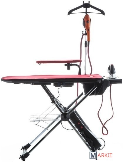 Общая мощность 1870 Вт: - парогенератор 1000 Вт; - утюг 850 Вт; - отпариватель 800 Вт; - вентилятор 20 Вт.Поддув гладильной доски. Отвод пара. Размер гладильной доски: 110x37 см. Высота гладильной доски в рабочем состоянии: 80-92 см. Полка для белья.