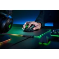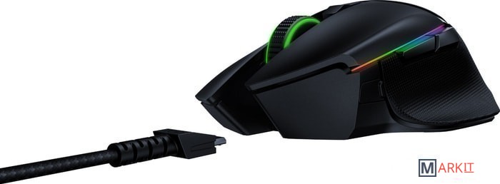 Два режима работы: беспроводной 2,4 ГГц и проводнойОптический сенсор Focus+ с реальным разрешением 20 000 DPI и с точностью отслеживания 99,6%Скорость до 650 дюймов в секунду / Ускорение до 50 gОптические переключатели Razer™ для мышей с ресурсом в 70 млн кликовВысокоскоростная беспроводная связь Razer Hyperspeed Wireless 2,4 ГГц11 программируемых кнопок (включая наклоны колеса и кнопку снизу)Съемная многофункциональная кнопка-триггерЭргономичный форма для правой руки с боковыми текстурными вставкамиТактильное колесико прокрутки игрового класса с регулируемым в неограниченном диапазоне сопротивлениемРегулировка чувствительности на лету On-The-Fly Sensitivity (стандартные уровни чувствительности: 800/1800/4000/9000/20 000)Гибридная память: встроенная на 5 профилей (4+1 профиль) и облачное хранилищеПоддержка программы управления Razer Synapse 3Расширенные настройки высоты отрыва и приземленияКалибровка сенсора под поверхность14 зон RGB подсветки Razer Chroma™ с настройкой 16,8 миллиона оттенков цветовСинхронизация подсветки с другими устройствами с поддержкой Razer ChromaНожки для мыши из 100% фторопласта (PTFE)Беспроводной USB передатчик 2,4 ГГцСверхгибкий USB кабель Speedflex длиной 1,8 м для зарядки и использования мыши в проводном режимеПроводной режим работы с одновременной зарядкойСовместимость с зарядной док-станцией для мыши Razer Chroma Mouse Charging Dock Продолжительность работы в режиме беспроводной связи Razer HyperSpeed 2,4 ГГц: до 100 часов (без подсветки)