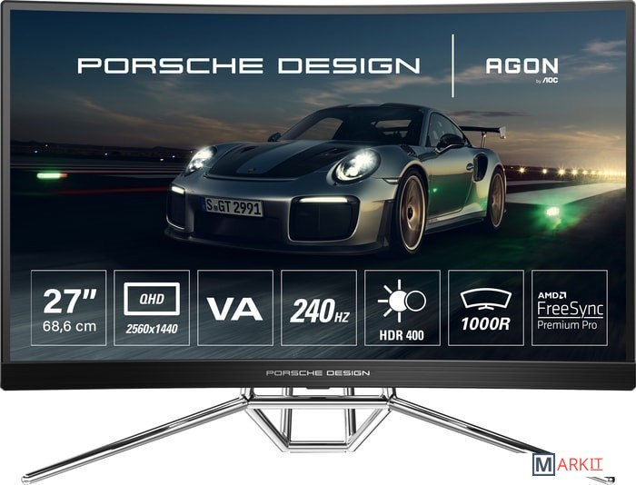 Рама монитора привлекает внимание к его задней части, тогда как переднюю часть выделяет световая полоса, которая меняет цвет в зависимости от ситуации в игре и проецирует на поверхность стола логотип Porsche Design или AGON.Беспроводная игровая клавиатура в комплекте. Горячие клавиши на клавиатуре позволяют быстро переключать настройки дисплея, например, между игровыми жанрами, регулировать FPS и палитру RGB и т. д.