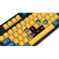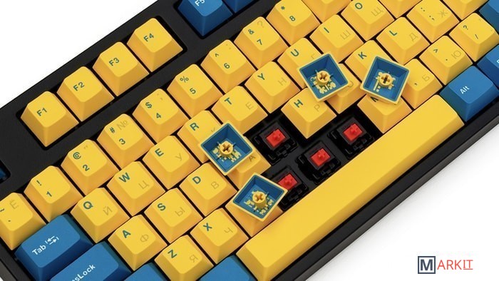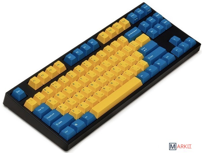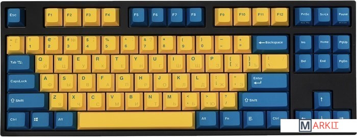 КЛАВИАТУРА БЕЗ КИРИЛЛИЦЫТип: линейныйСила нажатия: 60 грамм (тяжелые)Длина пути: 4 мм (2 мм до срабатывания)Данная модель выполнена в сочетании пурпурно-фиолетового, серого и чёрного цветов, расцветка обязательно понравится любителям сочных, но приглушённых красок. Клавиатура собрана добротно и монолитно, а сочетание высококачественных double-shot PBT клавиш с переключателями Cherry MX и звукопоглощающей подложкой позволяет сделать печать на клавиатуре максимально тихой (насколько это возможно для механики). Mini-USB порт спрятан в центре под корпусом, а на самой клавиатуре имеются центральная и две боковые канавки под кабель.Клавиатура поддерживает сочетание клавиш для регулировки громкости и управления музыкой, также имеется возможность переключения между 6KRO и NKRO.DIP-переключатели на задней панелиДают возможность поменять местами функции кнопок Ctrl и Caps Lock, Windows и Alt, Windows и Fn или отключить Windows.Звукопоглощающая подложкаПоглощает звуки при нажатии, делая процесс печати более тихим по сравнению с обычными механическими клавиатурами.Низкопрофильные клавиши Step-Sculpture2Данные клавиши заметно ниже и имеют оптимальный угол наклона, из-за чего, по отзывам, печатать приятнее и комфортнее, чем на более высоких клавишах.Клавиатура совместима с Mac OSFN-слой работает (кроме клавиш F6, F8, F9), а поменять местами клавиши-модификаторы можно в системных настройках. Проверено с MAC OS 10.13Функция Full N-key Rollover по USB (NKRO)Позволяет нажимать одновременно неограниченное количество клавиш. Для печати идеально подойдет как 6KRO, так и NKRO, независимо от вашей скорости. Для игр NKRO будет плюсом и неважно, нажимаете ли вы больше 6 кнопок или нет, поскольку, играя в любую игру, вы можете случайно нажать пару лишних клавиш и из-за этого клавиатура имеет шанс не среагировать на нажатие, которое вы хотели совершить изначально. Имеется возможность переключения между NKRO и 6KRO через FN сочетания.