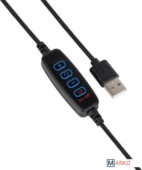 Основные особенности:- диаметр внешнего кольца - 160 мм- диаметр внутреннего кольца - 110 мм- три режима подсветки (теплый свет, холодный свет, нейтральный свет)- регулировка яркости (9 уровней)- индекс цветопередачи 60 CRI- угол рассеивания света130 °- встроенный настольный штатив (трипод)- встроенный держатель для смартфона- пульт управления на кабеле- длина кабеля питания 2 м