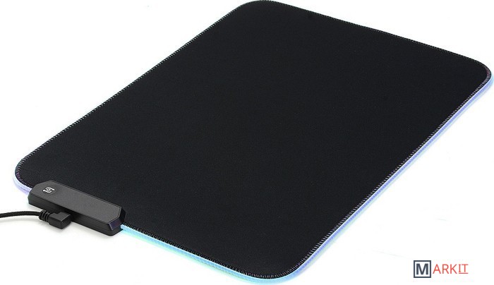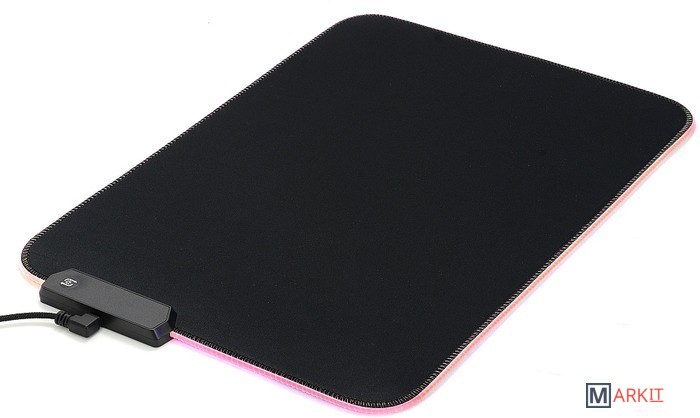 Гибкий коврик для компьютерной мышки с подсветкой. Текстильное покрытие из тонких нитей с мелкоячеистой структурой обеспечивает лёгкое скольжение мышки по поверхности, а вспененная резиновая основа препятствует смещению самого коврика. Переключаемая RGB подсветка имеет несколько профилей, сменяемых нажатием кнопки: красный, синий, зелёный, фиолетовый, голубой, жёлтый, белый, переливающийся (изменение яркости - двойное нажатие, отключение подсветки - удержание).