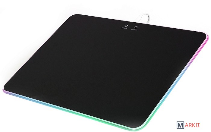 Твёрдый коврик для компьютерной мышки с подсветкой. Прочная нейлоновая плёнка обеспечивает лёгкое скольжение мышки по поверхности. Пластиковая основа позволяет разместить коврик даже на неровной поверхности. Вспененная резиновая подложка препятствует смещению самого коврика. Переключаемая RGB подсветка имеет несколько профилей, сменяемых нажатием кнопки SWITCH: красный, жёлтый, зелёный, голубой, синий, фиолетовый, белый, переливающийся (изменение яркости - нажатие On|Off, отключение подсветки - удержание On|Off).Покрытие для быстрого скольжения;7 профилей RGB подсветки;Смена яркости;Отключение подсветки;Съёмный кабель питания micro USB.