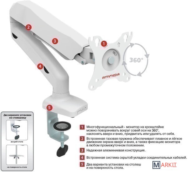 Markit » Кронштейны » Кронштейн Arm Media LCD-T21 (белый)