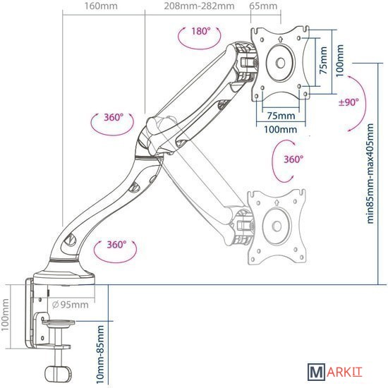 | Функциональные особенности | поворотный, с регулировкой высоты, кабель-канал, струбцинное крепление |