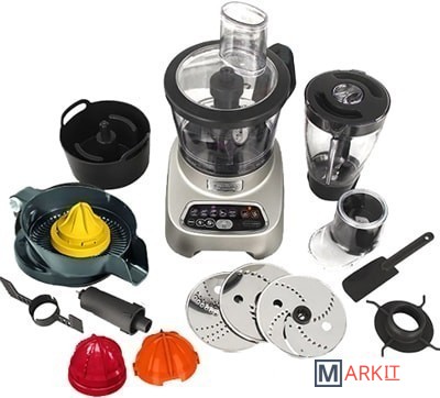 | Функции | блендер, цитрус-пресс, взбивание, смешивание, терка, шинковка, ломтерезка, драники, помол круп, кофе |