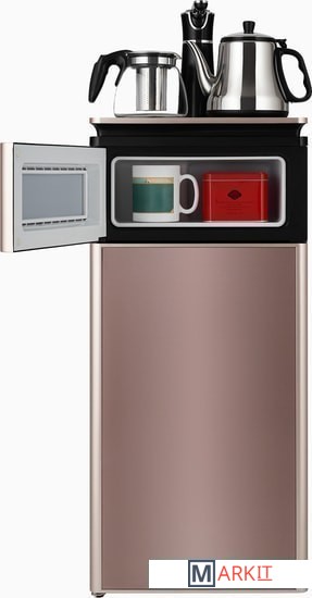 Благодаря стильному дизайну тиабар станет украшением не только в офисе, но и дома, легко вписываясь в любой интерьер.Оригинальное исполнение кулера с нижней загрузкой бутыли состоит из заварочного и электрического чайников, сенсорной панели управления, удобного крана подачи воды и шкафчика для хранения. Яркая световая индикация и информативный дисплей на сенсорной панели сообщат о текущем режиме и подключении к сети. Встроена защитная система от случайного нажатия и система подогрева заварного чайника, которая позволяет поддерживать температуру до 24 часов.Также с помощью сенсорной панели управления Вы сможете:- Нагреть воду в электрическом чайнике до 100 градусов;- Настроить по своему усмотрению температуру нагрева в электрическом чайнике от 82 до 100 градусов;- Установить время набора комнатной воды в чайник;- Включать и отключать функцию охлаждения по мере необходимости.- Настроить время подогрева воды в заварном чайнике в диапазоне от 1 до 24 часов.- Отключать/включать режим подогрева заварного чайника.