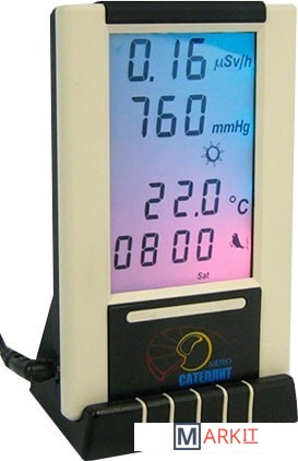 Может применяться в жилых помещениях, офисах, а также в качестве походнойметеостанции для выбора места и времени отдыха.Звуковое, световое и анимационное сопровождение момента попадания γ- илиβ-частиц в рабочую зону датчика радиации позволяет оперативно фиксироватьпоявление опасных излучений. «Сателлит-Метео» — первая метеостанция снастраиваемым под климатические особенности местности прогнозом погоды.Оригинальный корпус и индикатор с КСВ-подсветкой, плавно изменяющей вовремени свой цвет свечения, украсит интерьер жилого помещения или офиса.