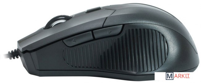 Оптическая мышь, оснащенная USB интерфейсом, 5 кнопками и колесом прокрутки с функцией нажатия.