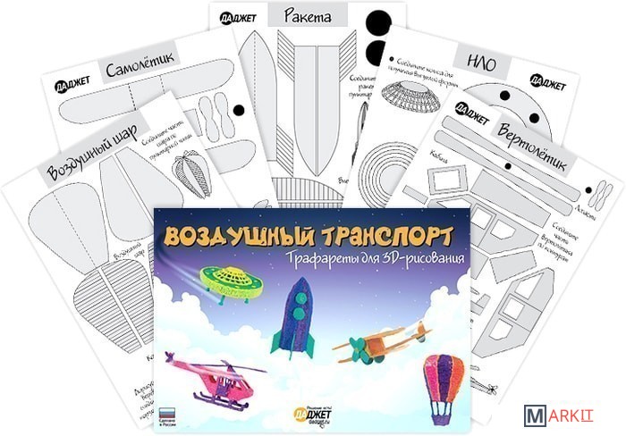 Markit » Расходные материалы для 3д принтера » Набор трафаретов Даджет RU0155 (воздушный транспорт)