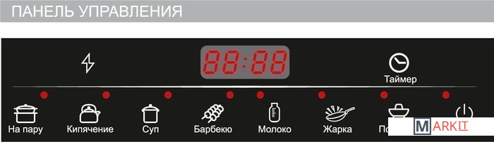 Режимы приготовления 7  (суп, молоко, кипячение, на пару, жарка, подогрев, барбекю)