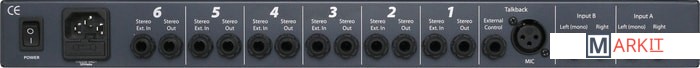 Студийный шестиканальный усилитель для наушников. Каждый из выходов на наушники оснащен индивидуальным регулятором громкости и кнопкой mute. Присутствуют регуляторы выходного уровня сигнала и микширования сигнала входных пар. Оснащен функцией TalkBack - для внешнего 3-pin XLR микрофона. Также присутствует разъем для подключения футсвитча - используется для функции TalkBack HandsFree. Выполнен в стоечном исполнении и подходит для монтажа в рэковые стойки 1/3U.