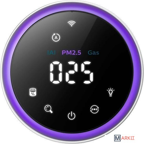 Удаляет 99,97% образующих смог частиц PM2.5, аллергенов, газов, бактерий и вирусов Удаляет частицы размером в 800 раз меньше, чем смог, то есть частицы размером 0,003 мкм (микрометр). Сканирует воздух 1000 раз в секунду и автоматически очищает егоОдновременное отображение 3 видов загрязненийСоответствующий символ на панели управления информирует о состоянии фильтра. Если фильтр не очищать или не заменять, через некоторое время устройство отключитсяПриложение «Чистый дом+» позволяет удаленно управлять очистителем, информирует о текущем уровне загрязнения в вашем доме и ближайших окрестностях, а также о текущем уровне запыленности в аллергический сезон. Вы проверите уровень износа фильтра и получите много ценных советов и рекомендаций.Длина шнура - 1,8 mФункции:Индикатор концентрации PM2.5, Блокировка от детей, Антиаллергический режим, Ночной режим, Индикатор использования фильтра, Индикатор загрязнения воздуха, Автоматический режим, Мобильное приложение, Индикатор аллергена