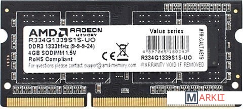 Markit » Оперативная память » Оперативная память AMD Radeon R3 Value Series 4GB DDR3 SODIMM PC3-10600 R334G1339S1S-UO