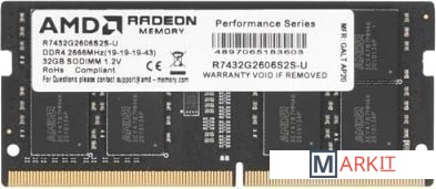 Оперативная память AMD Radeon R7 32GB DDR4 SODIMM PC4-21300 R7432G2606S2S-UO Код: 310944