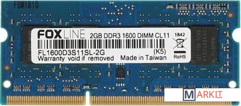 Markit » Оперативная память » Оперативная память Foxline 8GB DDR3 SODIMM PC3-12800 FL1600D3S11L-8G
