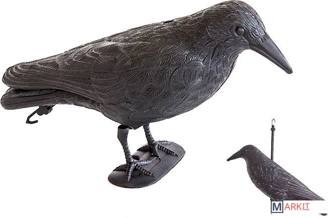 Ворон - отпугиватель птиц, размер натуральный, можно поставить или повесить.Искусственный ворон реалистичного вида и размера, отталкивает птиц (голубей, дроздов и т. д.) наживающиеся на участке или в саду.Полезен также для избавления от птиц, оставляющих свои экскременты на балконах и подоконниках.Изготовлен из легкого и прочного материала ABS. Полная устойчивость к ультрафиолетовому ИЗЛУЧЕНИЮ и непогоде.Способы крепления: к поручням с помощью крепежного хомута, поставить на газоне, подоконнике, подвешивание за крюк, находящийся в держателе, загнать в землю с помощью входящего в комплект держателя.