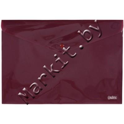 Папка-конверт пластиковая на кнопке Index, толщина пластика 0,18 мм, полупрозрачная красная Код: 32885