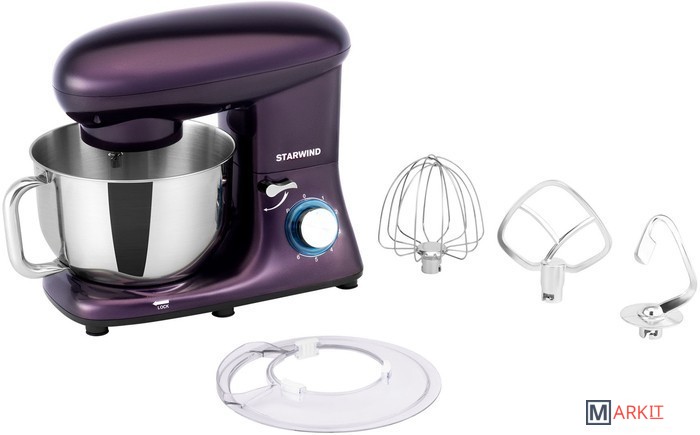 Полная комплектация - планетарный миксер;- защитная крышка на чашу;- насадка венчик;- насадка для смешивания;- насадка крюк для теста.