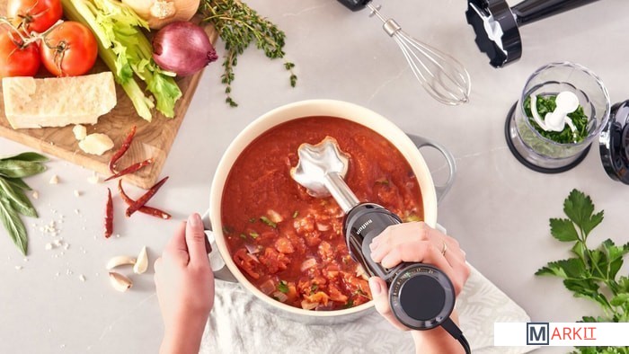 Ручной блендер MultiQuick 5 Vario предлагает 21 легко регулируемую скорость для более точных результатов смешивания. Скорости легко регулируются большим пальцем, а высокоэффективный двигатель мощностью 1000 Вт дает вам мощность, необходимую для быстрой обработки широкого спектра продуктов.Колесо с регулируемой скоростью, которое можно регулировать одной рукой - просто отрегулируйте скорость без перерыва большим пальцем.Увеличенная площадь резки. Смешивает цельные продукты за секунды.Ручка с частичным мягким захватом имеет эргономичную конструкцию, чтобы быть тоньше в верхней части для большего контроля и лучшего использования в любой ситуации приготовления.Предотвращает разбрызгивание - чтобы вы и ваша кухня оставались безупречными.Одноручное колесо скорости разработано для удобного управления большим пальцем. Этой же рукой нажимаешь на кнопку скорости.Детали можно мыть в посудомоечной машине.