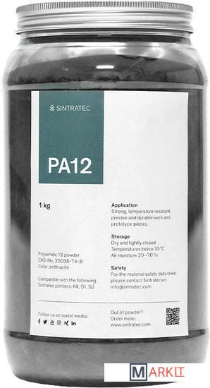 Markit » Расходные материалы для 3д принтера » Порошок Sintratec PA-12 1 кг (черный)