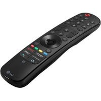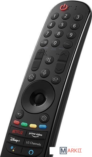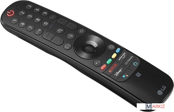 Пульт LG Magic Remote c приятным дизайном легко ложится в руку, а его удобное колесо прокрутки и волшебное кажатие помогает быстрее находить интересующий контент. Встроенная технология искусственного интеллекта обеспечивает легкий доступ к сервисам, а кнопки быстрого доступа к онлайн-кинотеатрам позволяют сразу перенетись во вселенную любимых сериалов и фильмов. Также в пульте появилась функция NFC.