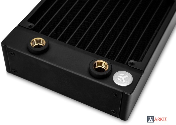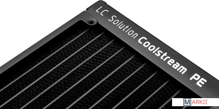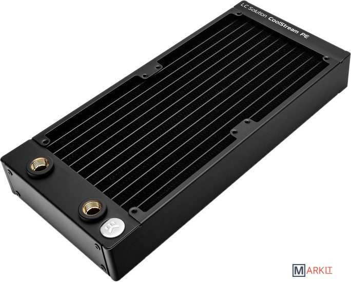 EK-CoolStream PE 240 - Универсальный медный радиатор, рассчитанный на установку 2 или 4 вентиляторов размера 120x120x25 мм (вентиляторы в комплекте не предусмотрены). Его габариты 280 x 130 x 38 мм, он подходит для установки в небольшие корпуса с крепежом под 240 мм радиатор и минимум 63 мм свободного пространства от него (с учетом стандартных 25 мм вентиляторов). Имеет пару отверстий под фитинги с резьбой G1/4.EK-CoolStream это обновленная линейка радиаторов от EKWB, включающая в свой состав три основные линейки типоразмеров устанавливаемых вентиляторов. Под 120 мм вентиляторы радиаторы серии SE PE XE (отличаются между собой толщиной), под 140 мм вентиляторы разработана серия CE и под 180 мм вентиляторы серия WE.Радиаторы EK-CoolStream созданы для тихой и максимально эффективной работы, сочетая идеальное соотношение ценыкачестваэффективности, радиаторы CoolStream оформлены в фирменном минималистичном стиле. Материал: медь 90% и латунь 10%. Базируется на технологии плоских каналов и гофроленты, проклеенной в два ряда между ними. Плотность ребер радиаторов составляет от 16 до 22 FPI, в зависимости от толщины и модели.Совместно с выпуском новой линейки радиаторов CoolStream инженеры EKWB, разработали специально для них новые вентиляторы EK-Vardar. Они идеально подходят для работы с радиаторами систем жидкостного охлаждения и без проблем справятся с продувом любой плотности ребер, при этом порадуют тихой работой, внешним видом, поддержкой PWM и качеством.Линейка радиаторов EK-CoolStream PE выделяется на фоне других за счет своей универсальности, продуманности и демократичной цены. Радиаторы EK-CoolStream PE имеют плотность ребер 19 FPI , что идеально подходит для работы с вентиляторами EK-Vardar в тихих режимах. Толщина радиатора/рабочего тела равна 38/22 мм.Совместимость с вентиляторами: 120x120x25 мм; фиксируются винтами с резьбой UNC 6-32