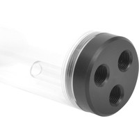 Резервуар для водяного охлаждения из плексигласа с винтами выполненными из меди. 3 отверстия для подключения снизу и 1 сверху. Можно использовать отверстия для установки дополнительных трубок с катодами.