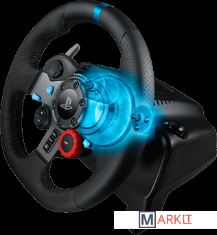 Руль достоверно воспроизводит ощущения от процесса вождения. Механизм обратной связи по усилию со сдвоенным электродвигателем точно передает эффект бокового увода колес и особенности поверхности, по которой осуществляется движение. Вал рулевого управления установлен на стальных шарикоподшипниках. Его вес соответствует параметрам рулей настоящих машин. Педали и рычаги из нержавеющей стали позволяют точно воспроизвести усилия, необходимые для управления автомобилем. Рулевое колесо с кожаным покрытием ручной выделки позволяет игроку ощутить удобство вождения самых роскошных машин. Плавность и бесшумность работы обеспечиваются за счет применения косозубой передачи.