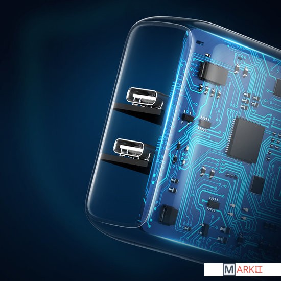 Выход: Один порт: 5 В/3 А 9 В/2,22 А 12 В/1,67 А (макс. 20 Вт) Два порта: 5 В/3 А 9 В/2,22 А 12 В/1,67 А (20 Вт2)Совместимость с: PD3.0 (PD2.0)QC4.0+ (QC4.0/QC3.0/QC2.0) SCP/FCP/AFCBC1.2--5V1.5A