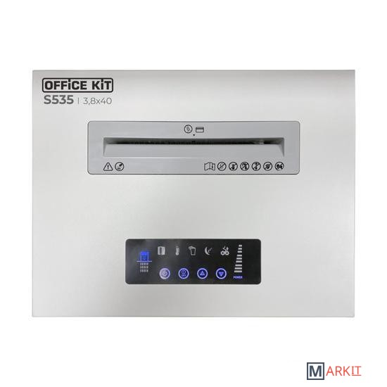 Office Kit S535 - мощный уничтожитель для среднего офиса в металлическом корпусе, с закаленными режущими ножами и информативной сенсорной системой управления.Обладает неоспоримыми преимуществами:Модель с увеличенной мощностью - одновременное уничтожение до 35 листовУвеличенный цикл непрерывной работы - 60 минут Инновационные высоколегированные ножи из цельного металлаЗащита от перегрева и низкий уровень шумаLCD-дисплейАвтоматическое управление