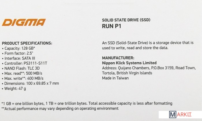 Markit » SSD » SSD Digma Run P1 128GB DGSR2128GP13T