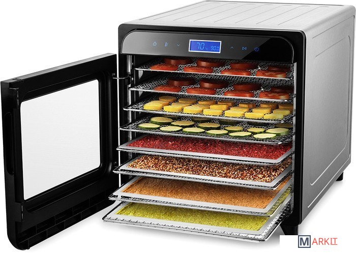 | Комплектация | 8 пластиковых сетчатых поддонов для сушки небольших продуктов (травы и ягоды)8 металлических сетчатых поддонов для сушки фруктов, овощей, мяса8 пластиковых сплошных поддонов для сушки водянистых продуктов и пастилы |