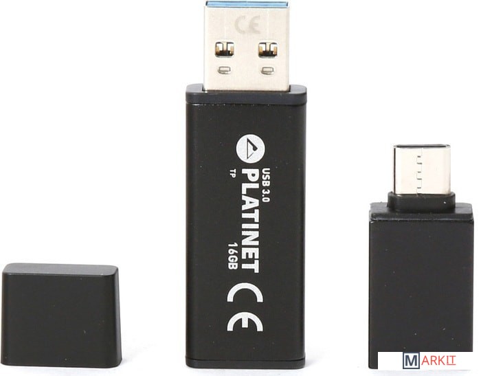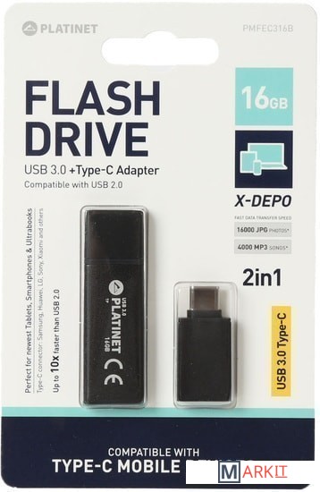Markit » Флешки USB » USB Flash Platinet X-Depo USB 3.0 + Type-C Adapter 16GB (черный)