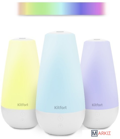 Подарит свежесть и лёгкость!Ультразвуковой увлажнитель - ароматизатор воздуха Kitfort KT-2806 увлажняет воздух в помещении, создавая хороший микроклимат для проживания людей. Может использоваться в помещениях и квартирах, площадь которых не превышает 15–20 м².Приятная ароматизация воздухаЗалейте чистую холодную воду в резервуар, добавьте прямо в основание увлажнителя 10-15 капель любимого эфирного масла на водной основе. И наслаждайтесь любимым ароматом!Умное устройствоУвлажнитель прост в использовании - с помощью кнопок на передней панели можно установить интенсивность тумана, включить или выключить подсветку в корпусе. По мере испарения воды увлажнитель автоматически отключится.Создаст уютную атмосферу!Корпус увлажнителя – ароматизатора подсвечивается изнутри разными цветами, его можно использовать в ночное время в качестве ночника. При помощи спокойных приятных цветов создаст в доме уютную атмосферу.Прост в использованииЛегко разбирается и быстро моется! Имеет съёмный блок питания, поэтому хранить его будет ещё проще и удобнее!