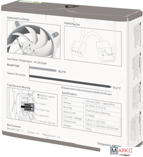 Markit » Системы охлаждения » Вентилятор для корпуса Arctic BioniX F120 (серый/белый)