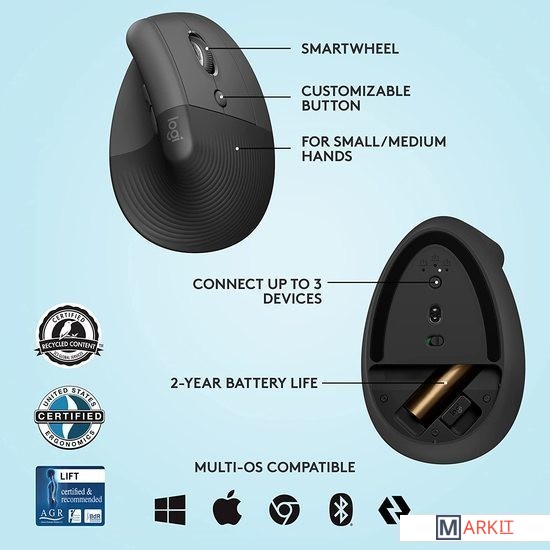 Markit » Компьютерные мыши » Вертикальная мышь Logitech Lift (графит)