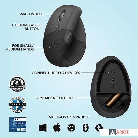 Markit » Компьютерные мыши » Вертикальная мышь Logitech Lift Left (графит)