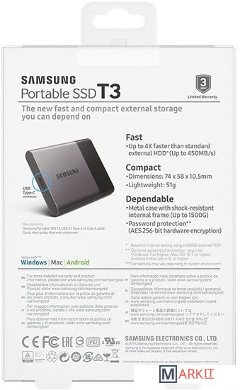 Markit » Внешние накопители (HDD и SSD) » Внешний накопитель Samsung Portable SSD T3 500GB [MU-PT500B]